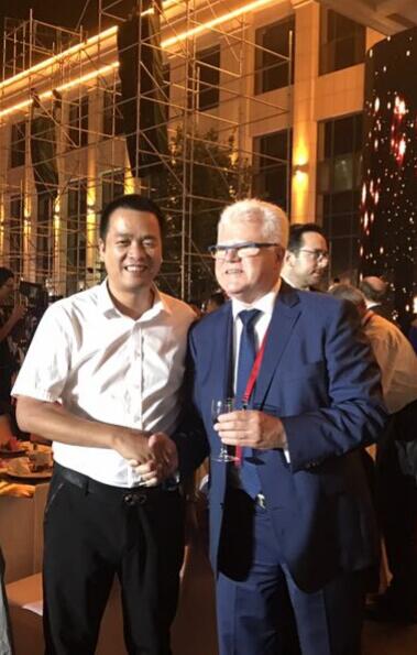 連云港市門窗協(xié)會會長潘國柱和德國墨瑟董事長墨瑟先生親切交流