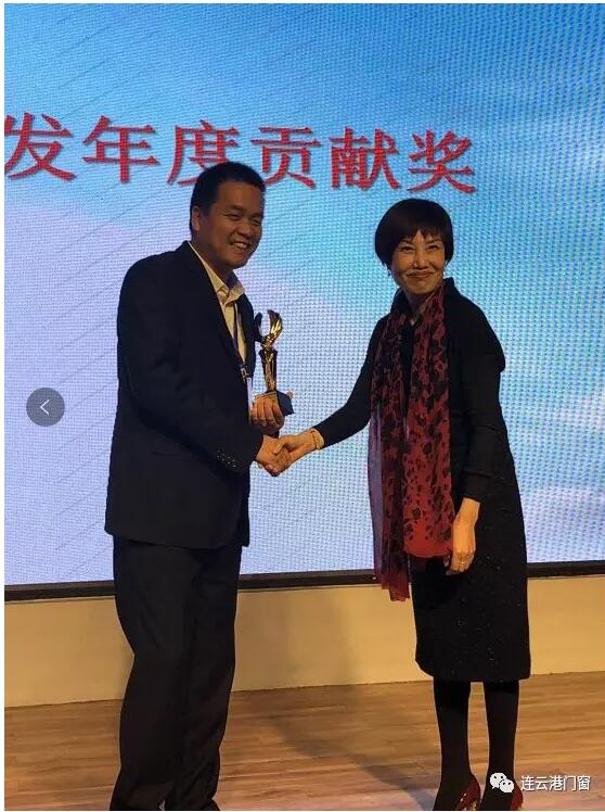 連云港市門窗協(xié)會(江蘇美好門業(yè)科技發(fā)展公司董事長)潘國柱連任委員會副秘書長一職并榮獲“2018年度商會工作特殊貢獻獎”