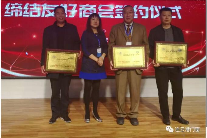 連云港市門窗協(xié)會與全國工商聯(lián)五金機電商會建筑五金門窗幕墻委員會締結(jié)“友好商會”。
