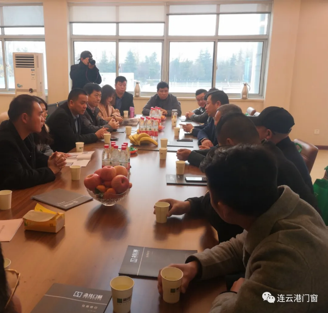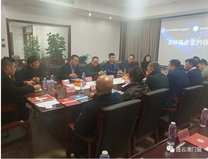 ? ? ? 11月28日,淮安清江浦青年企業(yè)家商會會長魏寶軍一行蒞臨連云港市門窗協(xié)會考察交流。期間連云港市門窗協(xié)會潘國柱會長帶隊陪同魏會長一行先后參觀考察了常務(wù)副會長單位“念佳門窗”和副會長單位“光明門業(yè)”兩家會員企業(yè),并就“推動跨地區(qū)合作,共享商協(xié)會資源,助力融合式發(fā)展“的主題開展座談。雙方簽約友好協(xié)議,正式締結(jié)友好商會。市工商聯(lián)張繼武副主席、市工商聯(lián)會員部王祥部長、市青年企業(yè)家聯(lián)合會費云健會長應(yīng)邀出席了本次活動。