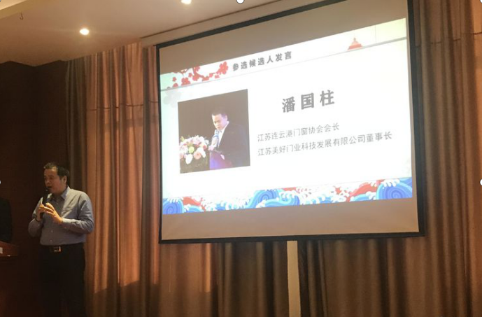 ? ? ? 連云港市門窗協(xié)會(huì)黨支部書記、會(huì)長、江蘇美好門業(yè)科技發(fā)展有限公司董事長潘國柱,當(dāng)選第三屆全國建筑門窗行業(yè)協(xié)會(huì)戰(zhàn)略聯(lián)盟主席并發(fā)表就職致辭。