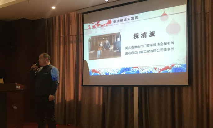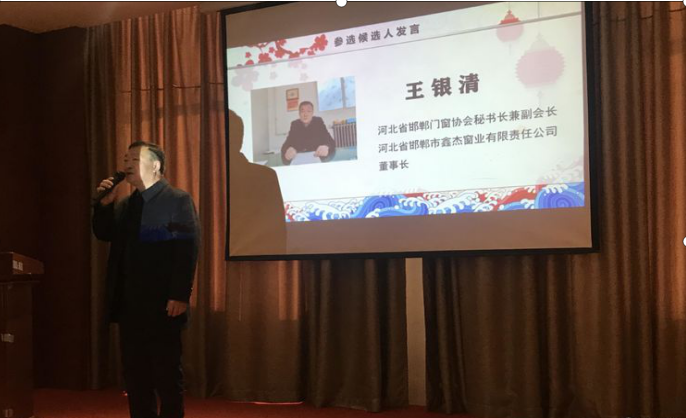 第三屆全國建筑門窗行業(yè)協(xié)會(huì)戰(zhàn)略聯(lián)盟候選人做自我介紹。