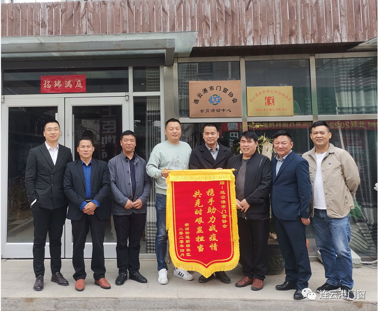 5月13日,海州區(qū)新浦街道新橋社區(qū)的史建國(guó)書(shū)記來(lái)到連云港市門(mén)窗協(xié)會(huì)會(huì)員活動(dòng)中心,為我會(huì)送來(lái)一面題有“攜手助力抗疫情、共克時(shí)艱顯擔(dān)當(dāng)”的致謝錦旗。對(duì)我會(huì)在疫情期間攜手該社區(qū)共同抗疫,捐獻(xiàn)物資助力一線(xiàn)防疫工作人員的一系列行動(dòng)表示感謝!