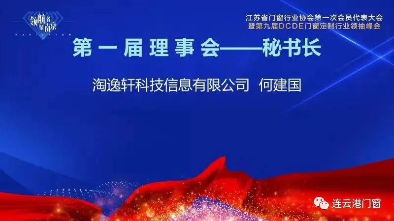 ? ? ? 連云港市門窗協(xié)會(huì)黨支部書(shū)記、會(huì)長(zhǎng)(江蘇美好門業(yè)科技發(fā)展有限公司董事長(zhǎng))潘國(guó)柱作為“江蘇省門窗行業(yè)協(xié)會(huì)”的八大發(fā)起人之一,應(yīng)邀出席了本次大會(huì)并被選舉為副會(huì)長(zhǎng)。